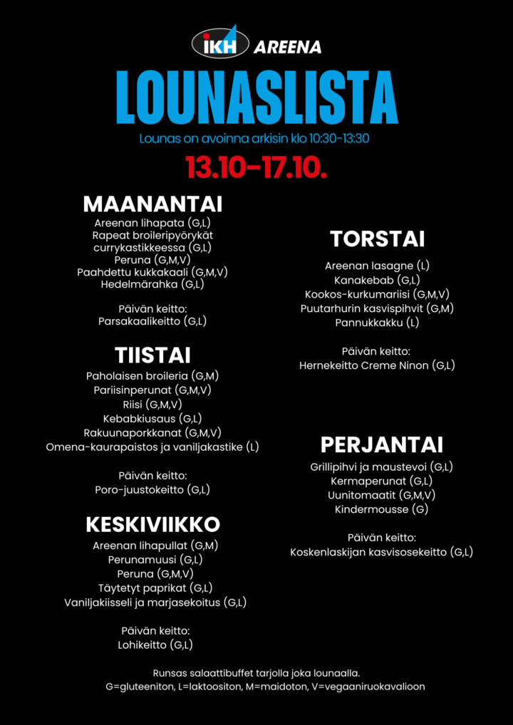 Lounas on tarjolla arkisin klo 10.30-13.30.